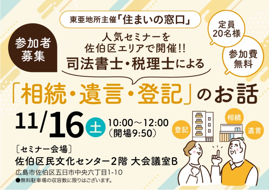 【東亜地所主催】住まいの窓口:司法書士・税理士による「相続・遺言・登記」のお話|広島の働く女性の情報サイト『tomato-web』